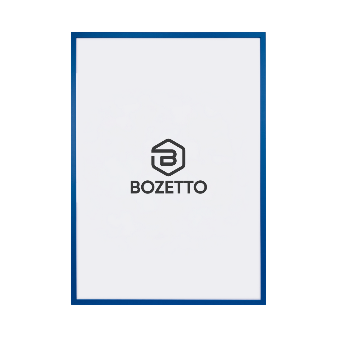 Tillverkad av äkta trä och målad i en djup blå nyans, skapar denna ram ett kraftfullt och harmoniskt intryck på väggen. Den blå tonen ger en känsla av lugn och kreativitet, perfekt för allt från vardagsrum till kontor och barnrum. Enkel att öppna och byta motiv – perfekt anpassad för våra posters.